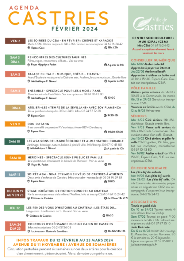 Labellisée France Services, la Ville dispose notamment d’un conseiller numérique au sein du Centre socioculturel municipal très impliqué, et d’un service de délivrance des pièces d’identité en mairie. La commune héberge également un centre de soins médicaux et de traumatologie. Castries, c’est aussi son école de musique, sa médiathèque, son collège, sa caserne de pompiers et sa gendarmerie. Des services qui font de Castries un village incontournable.