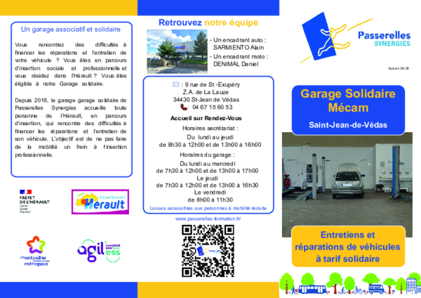 L’association Passerelles Synergies anime un garage solidaire et un chantier d’insertion à Saint-Jean-de-Védas. Objectifs : favoriser à la fois la mobilité et l'insertion des personnes éloignées de l’emploi. Soutenue par la Métropole, elle détient le label donnezvotrevoiture.org depuis décembre 2025.